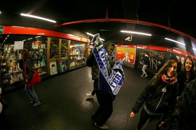 І хоч "Інтер” зараз перебуває не в найкращій формі та часто зазнає невдач, це не зупинило нас, українських любителів футболу, скласти компанію відданим вболівальникам "чорно-синьої” команди. Якщо чесно, то зустрічі із "Сан-Сіро”, ми чекали більше, ніж зустрічі із самою командою та їхніми опонентами. Вже в неділю зранку, перебуваючи у центрі міста, можна було зрозуміти, що ввечері буде футбол. Кілька вболівальників "Інтера” то там, то тут, будучи "під мухою”, ходили із символікою клубу та вигукували щось італійською мовою. Проте загалом було все спокійно: світило сонечко, лунала музика вуличних музикантів, і люди активно "шопили” у брендових бутиках. Але підходив вечір, і потрібно було вибиратися до стадіону, який кожного тижня запрошує на свої трибуни тисячі людей. Дорога до арени була непростою, адже необхідно було добиратися двома видами транспорту, спершу метро, потім автобусом, проте було легко слідувати маршруту, адже вже у підземці стало зрозуміло, хто повертається з роботи, а хто поспішає на футбольний матч. "Чорно-синя” символіка на людях була тим орієнтиром, який дозволив безперешкодно дістатися до місця призначення та поринути в атмосферу футбольного свята.
